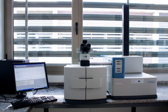 – Un espectrofotómetro de infrarrojo con transformación de fourier (FTIR) con accesorio ATR y y disco de reflectancia especular para ATR de la marca Thermo Scientific modelo Nicolet.
